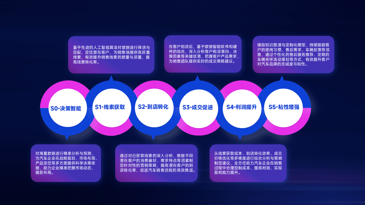 通过拓宽潜在客户来源、、优化线索分配并提高到店转化率,,,,以增强销售效率。。。同时,,,利用线索数据不断优化分析模型,,,,有效提升转化率,,,,扩大营销影响力。。